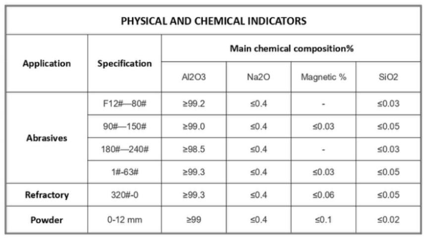 The product size is produced in accordance with international standards and national standards, and can be processed according to user requirements. The general particle size number is F4~F220, and its chemical composition varies depending on the particle size. The outstanding feature is that the crystal size is small and impact resistant. If it is processed and broken by a self-grinding machine, the particles are mostly spherical particles, and the surface is dry and clean, and it is easy to bond with the binder.